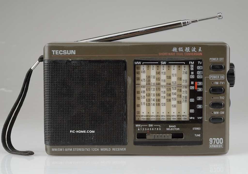 第五台,德生9700。准确的说这部7600是我老爸的,可能是开会的纪念品,几年前一段时间他经常在天台边乘凉边听短波,后来好像调谐指示出现了问题就扔一边了,前阵子被我从儿子玩具堆里挖出来,整理了一下调谐指针,让他获得了重生。此机接收能力不错,调谐手感过紧,声音薄。估计后出的9700DX在这几方面有所改进。