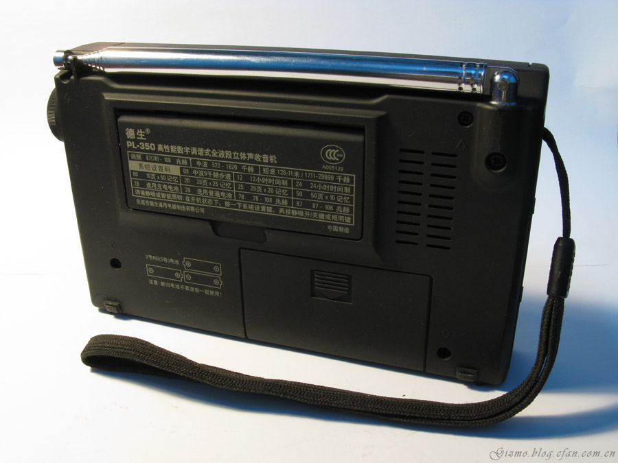 2,体积适中,虽然比我以前用过的收音机都大一号,但比同期的TECSUN的PL550小,比我的9700DX小,还算可以带出门用用。