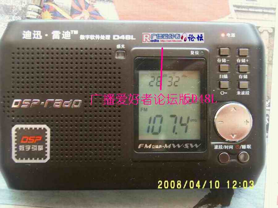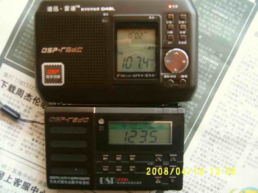 这一阵子,因为藏独分子闹事,外国电台干扰厉害,纯外语电台又听不懂,对于我来说短波好不好就是国际中文台能不能接收清楚,说真的,这几天由于要测评D48L和D39L的短波情况,耐着性子听了法广、VOA等胡扯电台。下面的频率都是我在这几天早间和晚间接收的:德广 11830 韩国 7275 法广 12045 12025 翻地刚12035 朝鲜9345 越南9550 VOA 11925 11805 11990 。同时我也与DE1102作了对比,单纯从听感上D48L、D39L与DE1102几乎已经没有差距了,但是稳定性可能稍逊于DE1102。可能大家说我测的都是强台,我想弱台不用设备,就是大家公认的武器1103又能怎样。