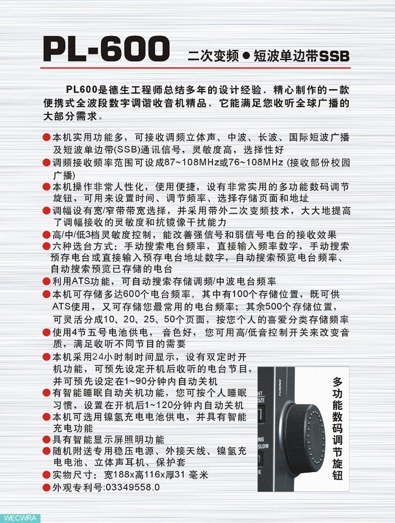看问题要看到实质。PL-600是一部优秀而带着遗憾的机器。消除这些遗憾,从技术上讲,对德生的工程师们,简直就是小菜一碟,问题出在什么地方呢?
