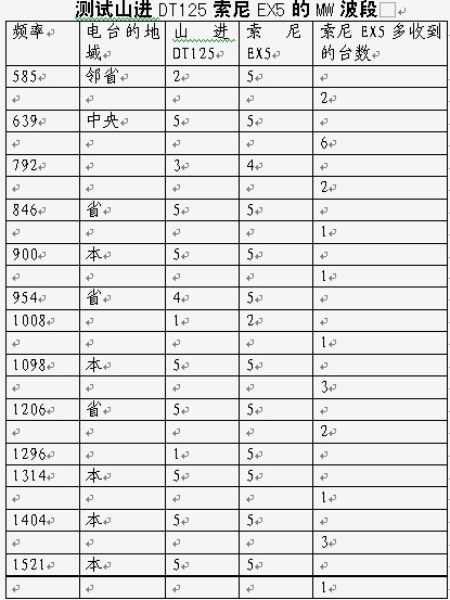 因为山进DT125有不少中波台收不到,不知道详细的频率,只能用多收到的台数表示。