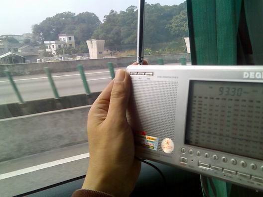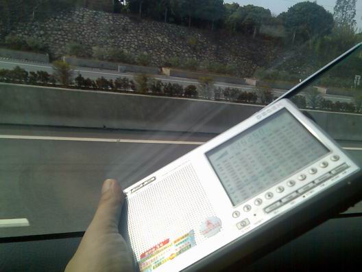 中波在路上没啥表现,干扰声挺大。夜里的表现让我吃了一惊:在韶关的东枫花园矮层楼房里,清晰收听到香港电台AM621和783。韶关的FM令人失望,除了卖药,就是猜SB迷,据说搞了有些时间了,也不知有多少上当的,我就有个亲戚上过当,呵呵···