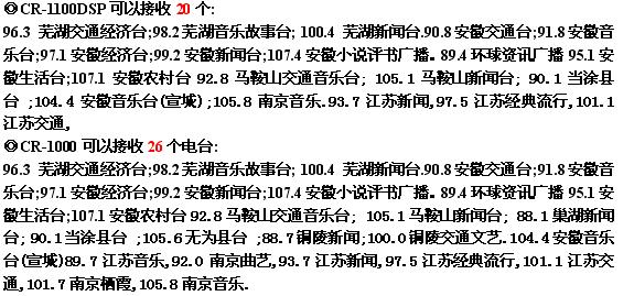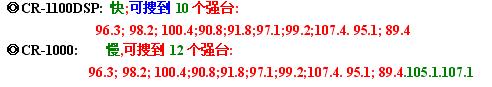 1. CR-1100DSP灵敏度比CR-1000要低,主要体现在对于南京市台的接收上,但选择性强于CR-1000.