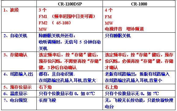 一、 CR-1100DSP与CR-1000非收听层面的比较