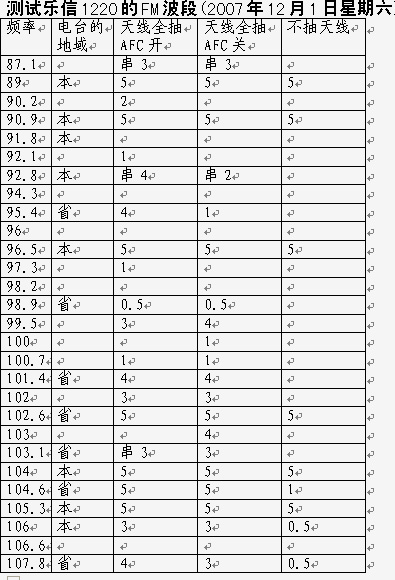 看看FM的结果,怪怪的吧,总的讲,开AFC比不开好,不过开了AFC好象还少收到几个台,是不是怪怪的。