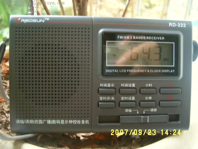 调频广播:不是很理想,本地台可以很好接收,但邻市台就无能为力了。本地台常串在弱台中,很难受。我买此机主要是早锻炼使用本人认为绰绰有余了。收台如下: