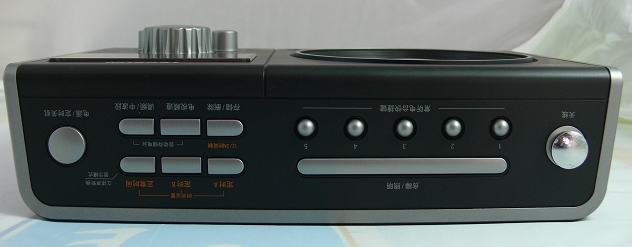 当打开包装,德生首次采用回收纸纸浆成型缓冲内包装,很环保!机器的外观显得时尚庄重。采用银灰圆弧后背和黑色基调面版,线条非常简洁明快,机器的三个侧面设计成梯形,给人的感觉时尚不晦涩,特别是喇叭网罩的设计,让人耳目一新过目难忘!这机个头可列为大便携机,除了音调,音量和飞梭旋钮设计在前面板上,其他所有的按键都设计在机器顶上,左右侧面没有一个功能键,是典型床头机的设计,比CR100要漂亮!还有喇叭顶上的那五个一排的按键是做为常用的5个电台的存台钮,使用方便!而且这5个键成球状突起,便于黑暗环境中的操作。CR1000有200个存储台。想调取预先存储的电台时也比较方便,只要按一下飞梭就可以。CR1000机器的飞梭采用了和以往的调谐飞梭有两个不同,此飞梭可旋可按,轻按飞梭,就在已存电台搜索和频率搜索两个模式中方便切换。此外,快速调节飞梭时就自动触发“自动搜索功能”,设计得很人性化,方便了使用者。但触发自动搜索后会发现机器的自动搜索的速度很慢,很费时间,最好能有一个开关来控制是否需要自动搜索。CR1000的后背多数机型不同,它设计为全封闭,后板没有透气孔,可能是和该机采用了高低音分离喇叭同轴安装有关!CR1000最大的特色是喇叭,它没有采用一般收音机用的全频喇叭,而是采用了高低音扬声器在同一个轴上的方式才提高和改善音质,确实此举确实很有效果,该机的声音轻松,平淡,清澈!非常清晰,平衡耐听。长时间听也没有感到累和烦的感觉!确实是该机的一个亮点!高音的要是能再提升的话,感觉会更完美。