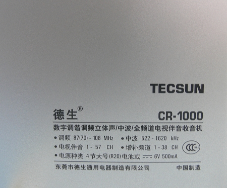 前年德生研发了一款带电视伴音接收的床头收音机CR100,很是合我的口味,但当看到这款机器的后背我决定只有忍痛割爱了,所以我一直想买一台漂亮的带电视伴音的机器,转眼一年多过去了,德生终于在CR100的基础上进行的改进和完善,研发出全新外观的机器CR1000!在推出CR1000的同时,还推出了一款轻薄的使用220V交流电的卧式机器CR200!作为收音机的业界龙头老大,德生的研发实力是有目共睹的!做为一个德生的收音机爱好者,自然少不了要拥有这两款机器。感谢德生对我的信任和支持!