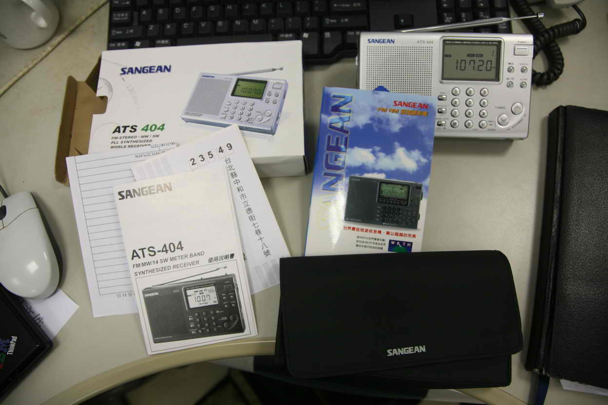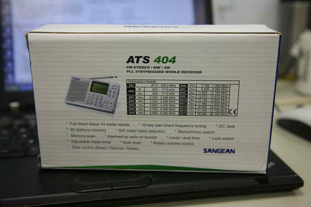 2005年一个偶然的机会,早期由上海周先生卖出的一台香槟色的山进ATS-909几经曲折倒手,落到了我手上,909其出色接受性能以及优美的音质立刻征服了我,从此对山进品牌大有好感。后来这台909送给老爸,老爸也赞不绝口。2006年我又在老任那里买了一台银白色的,我想再搞一台黑色的就大全啦。年初浏览山进网站,我一下子看中了小巧的ATS404,当然主要是现在没有建立独立完善的金融体系,能用的米不多,能省就省。这款机器山进定位是入门短波接收机,价格是短波收音机中最低的。经过坛子上一番折腾,盼望已久的山进ATS404终于到手了。