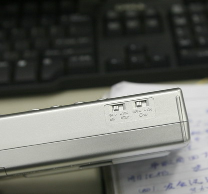 液晶屏下面是数字按钮,圆形,按程较长,有点象YB400,但比YB400有硬度,介于400和7600G之间。数字按钮旁边的三个波段选择按键和开关下面的闹钟设置等按钮采用金属工艺,我看不出来时是金属按钮还是塑料度金属的,显得很雅致。