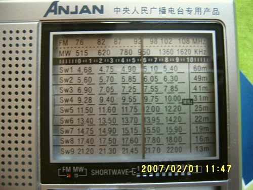 不知有A-911的朋友怎么看,从我的使用情况来看中波很优秀。虽然现在很少有人喜欢这个波段,但因为本地接收到的中波电台主持人很努力,广告又少。所以我听的还是比较多的。在我所在的城市用A-911可以清晰稳定接收到130公里以外的省会城市电台—合肥台(中波666),又听到在那里上学时那个喜欢的主持人(海萌)的声音,好是激动。