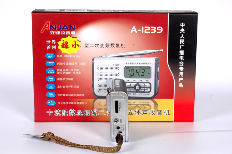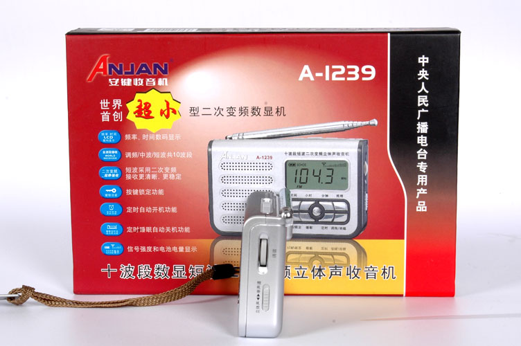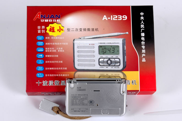 安键A-1239,是继A-1206之后创下的又一个世界之最—-超小型二次频显收音机,从制造工艺到功能和性能比过去都有较大的提高,机身设计美观大方,衔接部位严至合缝,色泽清淳靓丽,调节旋钮与键盘设置恰到好处,同DTS-05放在一起(一黑一白)简直就是一对孪生姊妹,真是百看不厌、妙不可言,让你爱不释手。