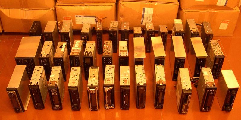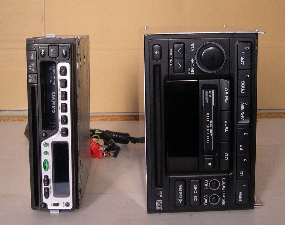 卡带CD收放机。共2台。这类车机可能比较少生产。值得一评的是左边的一台三洋机。此机竟在1 DIN的厚度上制作集CD机,卡带机,AM和FM收音机。实际测试,表现相当不俗。很多车机老板都说第一次看到这种机子,看来还是少有的。另外的一台在本台已经数次露脸,再此就不说了(图5)。