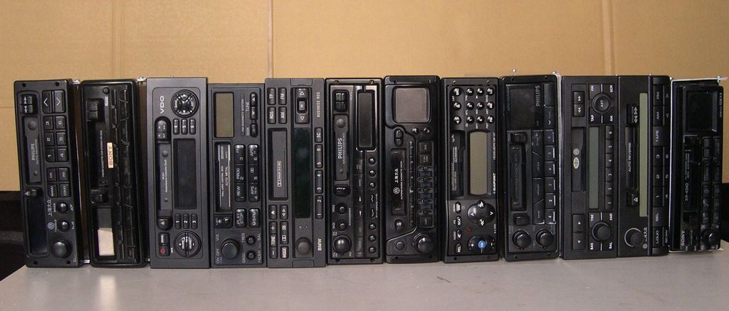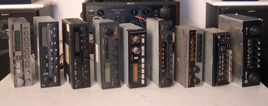 卡式录音带的收放机。共12台。从卡带收放机开始,车机全部进入电子调谐。这个阶段,生产商很多。卡带功能有机械,电调。这里的12台机卡带功能全部完好,表明制作水平明显高于收录机。最值得点评的是第8台蓝宝机。该机卡带播放质量最好,中波波段具有降噪线路,DX时特别安静,调频波段还可以记忆电台的名称。确实难得(图3)。