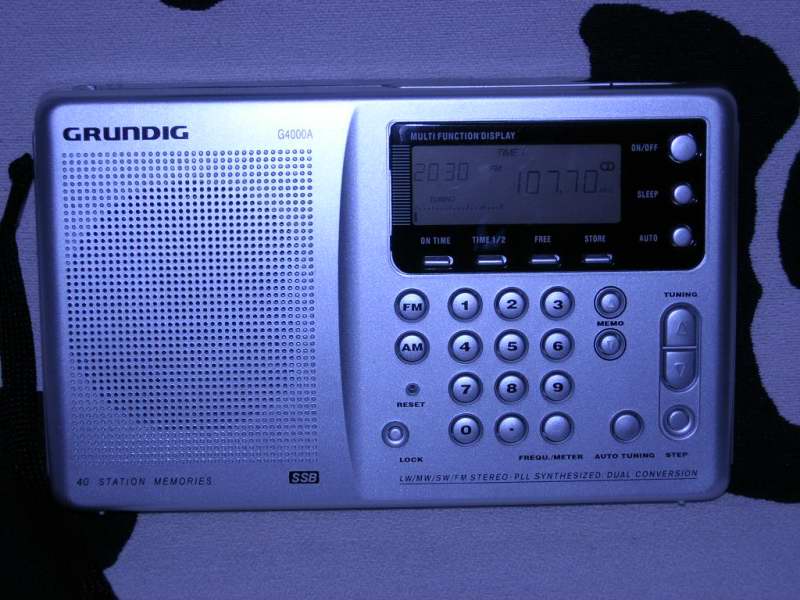 6.最后登场的是G4000A(YB400PE),南霸天处购买,俺最值钱的收音机,为了得到它俺和老婆大吵了一架。它的声音确实不同反响,今天晚上吃饭的时候,隔壁邻居听到声音说这台收音机的声音最好听,其他的收音机都是些破破烂烂的声音(原话)。三大便携机之一、优秀的性能和美妙的声音是我留下它的原因。