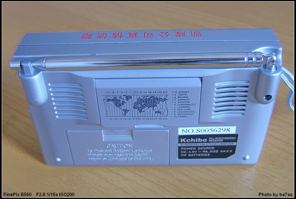 中午开机试听,给我的第一印象,KK-S320是一款不错的收音机,中波、短波和调频的灵敏度都还可以。特别是声音明亮,听新闻节目时语音非常清晰。低音略显不足,当然,φ57mm 16Ω 0.3W的喇叭,有这个效果已经不错了。