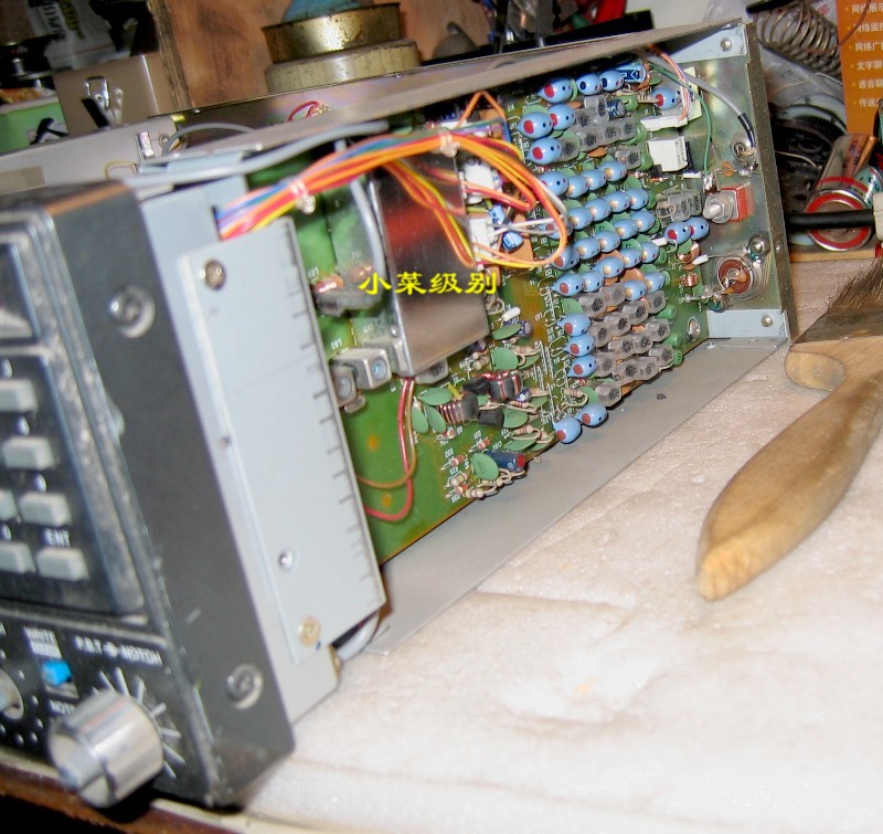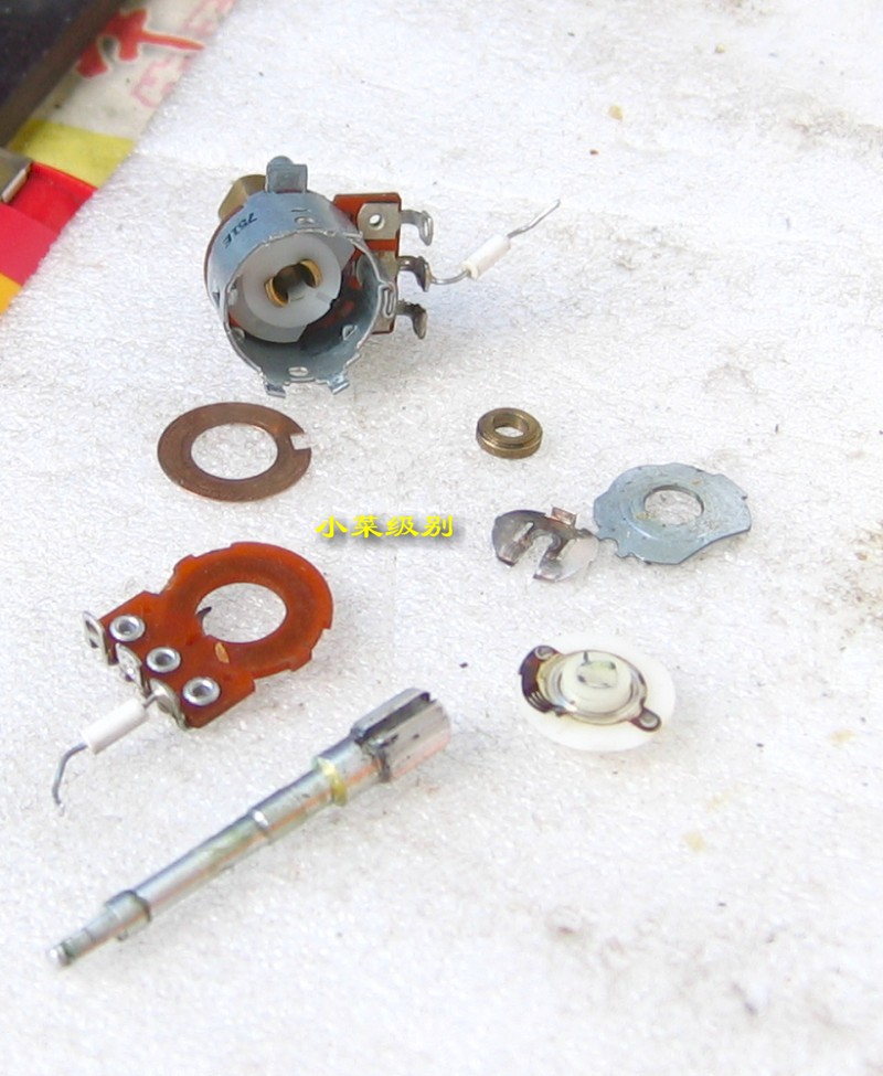 这是71E的音频增益和前置增益组合旋钮,第三张表现的是完好的音频增益和前置增益组合旋钮(左)与音频增益失灵的组合钮(右)。R71E由于在原单位用得很“狠”,甚至也可以说是小日本的不老实,它们的旋钮有些会失灵,一些是使用者的粗暴使用所致,而有些则是出厂的时候就这样,去年有台全新原包的R71E就是音频增益钮失灵可以360度旋转。当时由于胆子不够大学技不好,不敢开机检查,所以就原样转让了,现在想找原包的也没这个店了,这是典型的菜鸟行为啊,其实恢复起来很简单的。