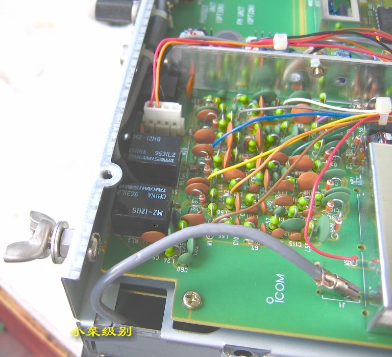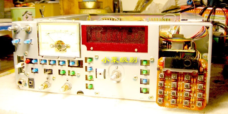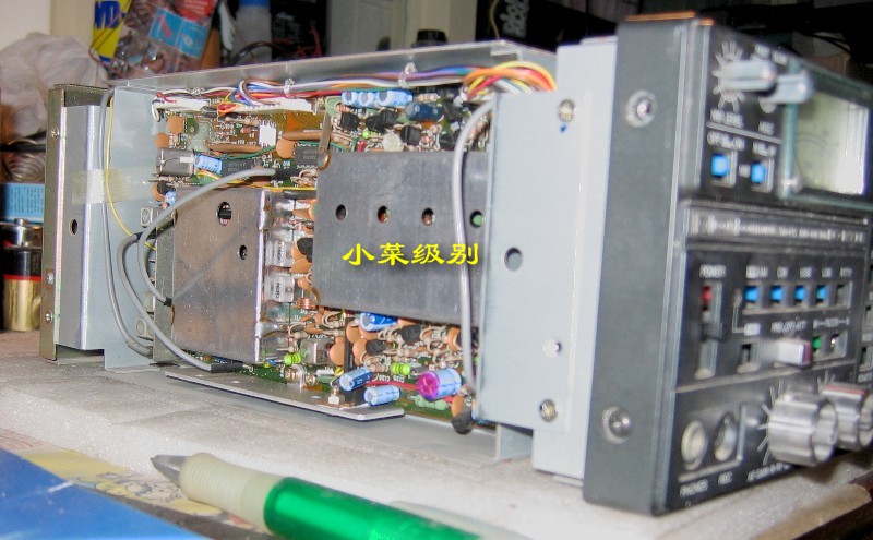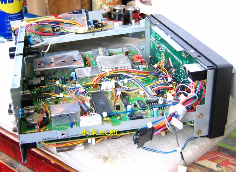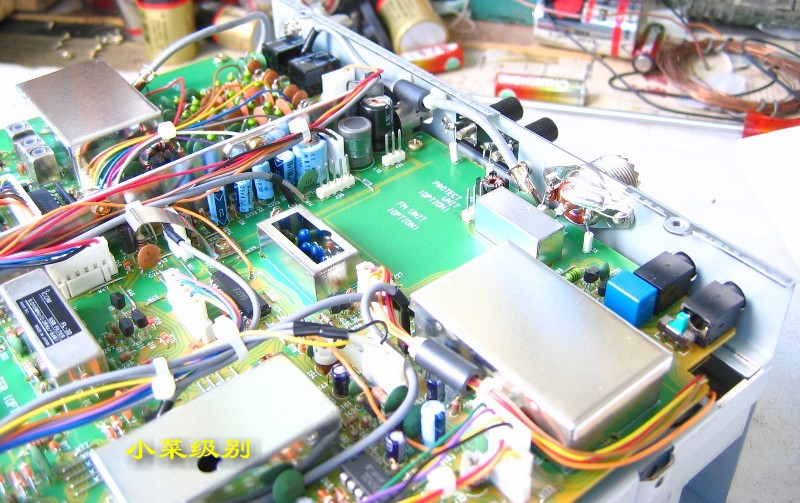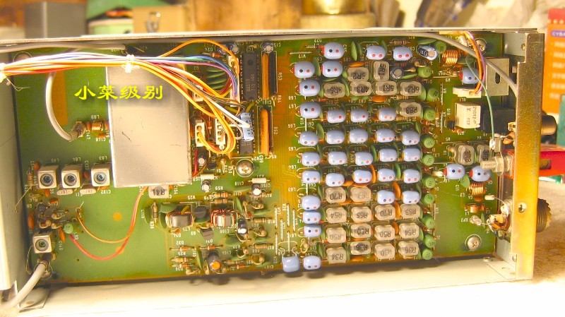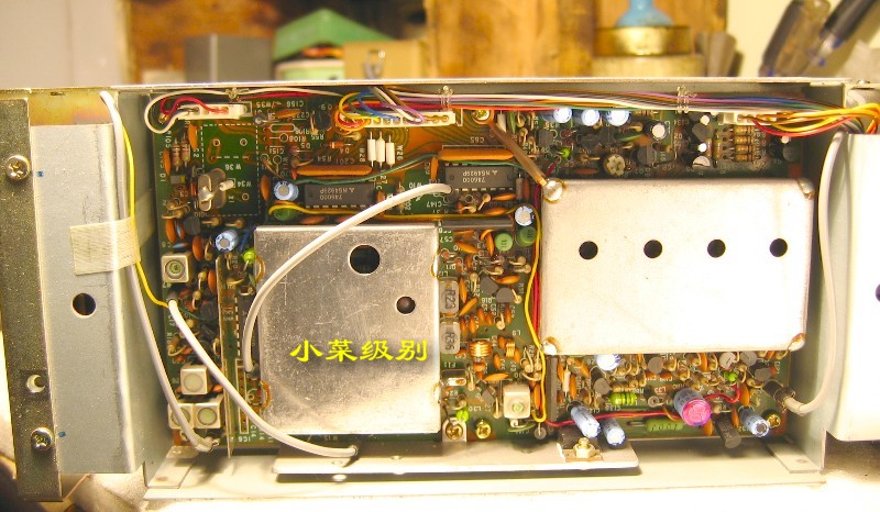 这两张照片是出厂编号在1万号以上的机器,可以看到天线输入部分有屏蔽罩,面板后的IC是一个。