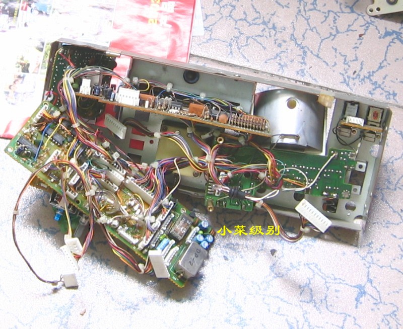 这是出厂编号在1万号以下的机器,可以看到天线输入部分没有屏蔽罩,面板后的IC是两个。