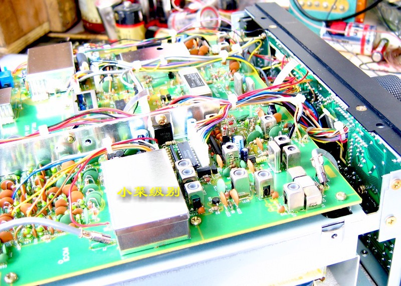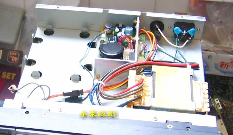 R72E开了上盖后显露出来的是第一层--电源部分,这样的设计真的该打!变压器放置在前部远离散热窗,昏!!后部左侧是放置内置可充电池的。