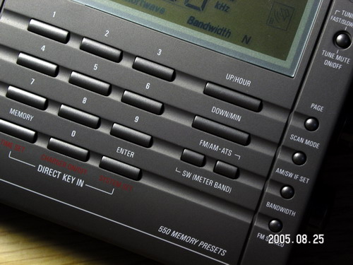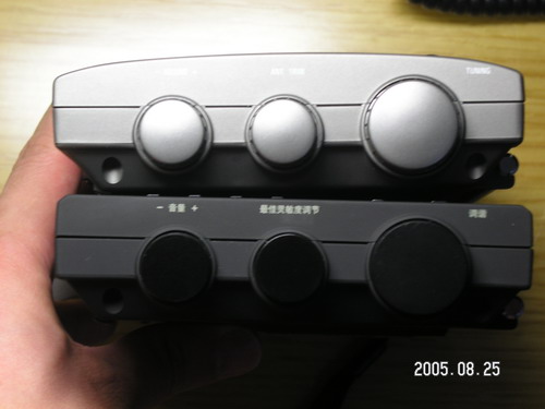 第三式,调频接收.在九楼之上,两机都把天线全部拉出,先自动搜索存台,看看对强台的接受有无区别,两机都收到14个台,由于其中的13个都是本地台,没太大的比头,要说只能说是E10的喇叭比550好出一大节,声音浑厚有质感,动态范围明显的比550大.很有"蓬蓬"的感觉.可是在对台湾的100.1的ICRT的接受方面,呵呵,国人幸福啊,550明显的强于E10,虽然两者的信号指示都是满格,但是E10的背景噪音很大,有时难以听清,无法解调出立体声;而550,稳定而清晰的接收,噪音小,话音清晰音乐悦耳,始终是立体声状态!但是两台机器都存在着一定的频率偏移,550在100.13最好而E10在100.15最佳,呵呵,有了调频频率微调功能确实方便.强啊!这一招式中550绝对优势胜出!