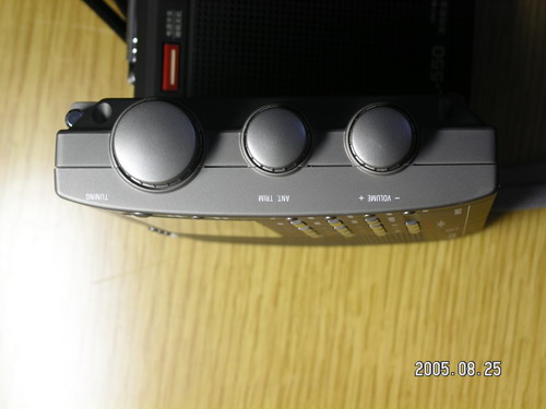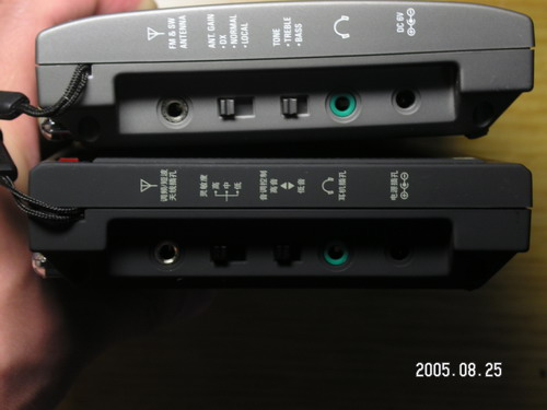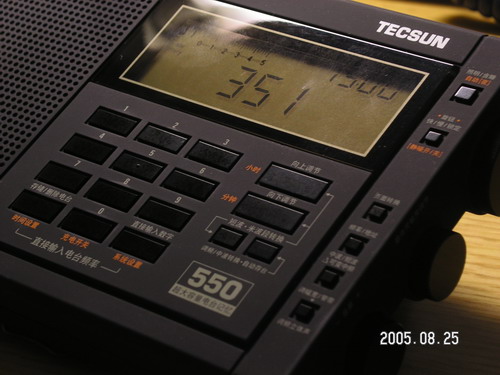 第四式,中波.这一式里,两台机器都调到相同的频率,并且调整机器的方向直到接收最好的状态,比较两机的噪声和最终的可懂度.711KHZ是台湾的汉生公司光华之声广播,信号比较弱,市区室内接收困难,而且附近有福建人民广播电台的邻频干扰压制,白天无法收到.现在是半夜,福建台已停止工作,调整两机,均能稳定接收,可是550的信号指示始终比E10少一个,两者的收听效果几乎无差别,E10的声音浑厚占了优势,因为可以在一定程度上衰减高频噪声,有点音频DSP的感觉,嘿嘿.再到819台湾正声,1287汉生,1557 FAMILY  RADIO E10和550之间在噪声和可懂度方面相差很小,接收都很稳定,只是在819台湾正声电台上E10的"蓬蓬"又变成了缺点,因为音频信号本身就比较含混,再蓬一下就不好听清了,所有的过程中,E10的信号指示始终比550多一个,550在听感方面确实不如E10,声音比较尖锐,不耐听,耳朵容易疲劳,若切换到低音,又感到声音发闷,心里憋的慌.但是比较两者的灵敏度和选择性上而言确实是半斤八两,说不出哪个更优.这里两机握手,平分秋色.