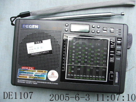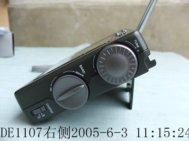 以前听说1107调频/中波/短波接收性能相同于1103,我不敢相信.然而使用后的今天几乎比不出差距,独设的时钟窗口始终显示时间,方便而有效地解决了在收听广播时因时间性强而错过精彩节目的困惑.喇叭音在爱好者系列中是最耐听的了,短波灵敏度控制选择远中近三档层次分明效果突出,我想这是DE1107的短波跟踪式之又一亮点,提高了短波可懂度并增加玩味,哈哈!爽!