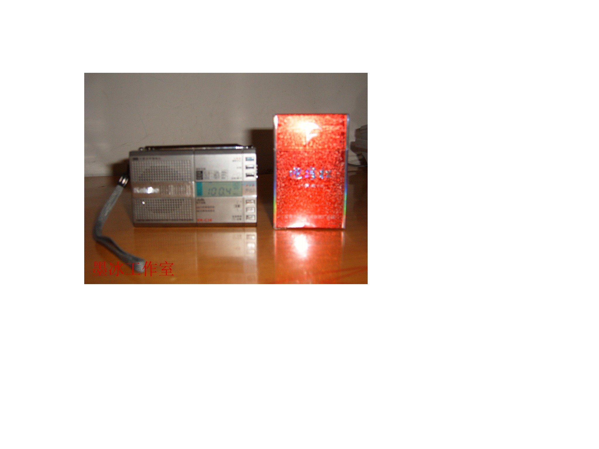1、漂亮的外观:打开包裹后第一感觉就是比图片要好看,看来凯隆的美工要打屁股了,这么好看的机子给你搞的忽忽的。正面按键设计紧凑,各种功能说明简洁明了,商标也是模具印刻嵌在中间的金属条上十分好看,也比较上档次。背面的设计也很漂亮,与正面色调一致,尤其是支撑板的设计更为赏心悦目。显示屏虽小但显示的容量很大:电子音量、波段、时间、频率、定时开机、睡眠关机、存储位置等。不过也有些遗憾或值得商榷:1)金属条上的网孔比塑料网孔小,不太协调;2)网孔没有防尘罩,可以看见喇叭;3)比较容易掉漆(据说后来的产品这个问题已大有改观)。4)电池盖子太紧,换电池尤为不方便;5)机子的序号最好帖在电池仓内,否则长时间摩擦就会看不见了;6)“30个预设存储电台”的“30”字体让人不能一眼感觉到是多少。