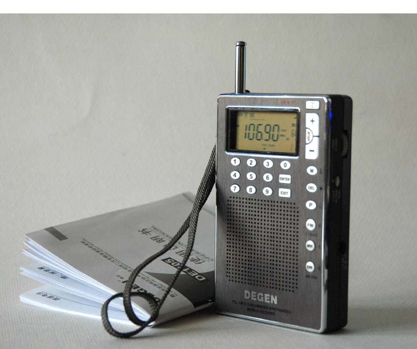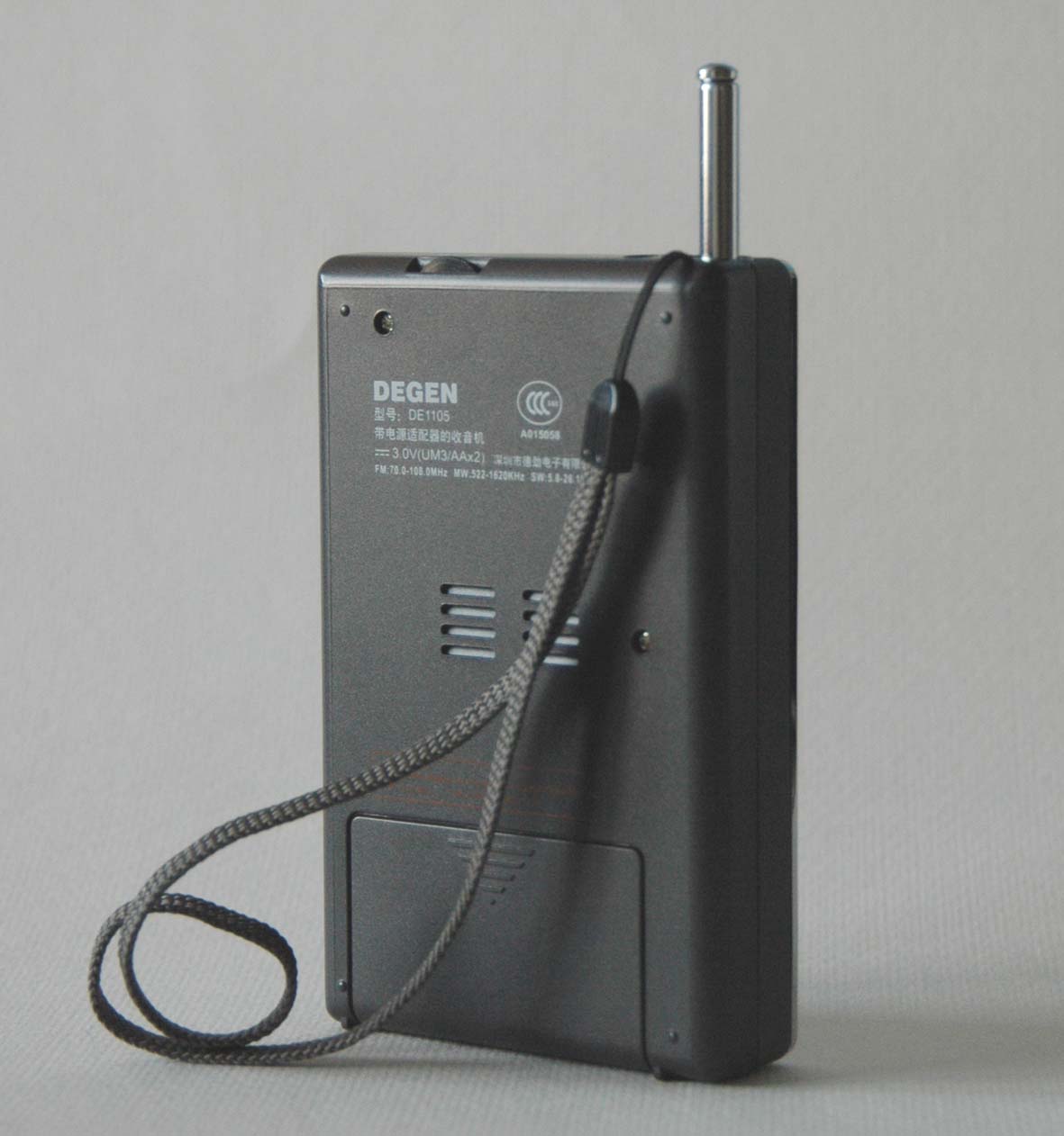 请快递公司拿到---1105,有几天了。请各位朋友原谅,我不是专业无线电人士,写不出详细而专业的什么机评,只是收听爱好者的短言而已,也是一己之见。刚收到机时,第一印象是整体的机身色彩还可以,但造型设计不理想,据称是“时尚”造型、但面材的木纹理与发亮的铝合金边框只会给人感觉是低俗的“时尚”。我倒是觉得-------机身的背面比正面好。也可能是我有SONY7600G与山进909等机吧。好在1105的小巧------是我所钟情的,也是我一直盼望的。玩了几天,对造型方面的遗憾,我也委屈下来了,慢慢习惯吧!收音方面,这么小的机身是不错的,灵敏度算不错,中午我收听ZY亚洲台,感觉还可以,我想如没有干挠会更好。听FM时,带上耳机,放进口袋,有点听mp3的时尚感。天线处理不错,但如果放进口袋能不拉硬天线听短波那该多好呵!我们的理想。另外,很多功能操作还嫌复杂了一些,有时还会有误操作,昨天晚上我一开机,没有任何声音,但显示面板正常,也没有锁机,吓我几跳,我以为坏了,其实是误操作。总之有得有失。在此,向德劲呼唤造型美!!!