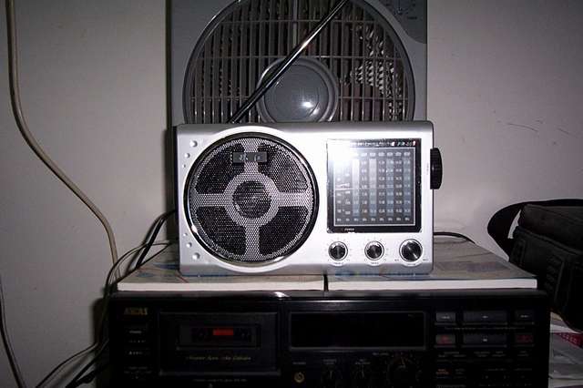 到下半夜,使用电池重新听中波,这时发现中波除了噪音稍大外,感觉挺不错,整个中波高、底端灵敏度均匀,能收到许多台,可能是其大喇叭加音调的原因,音色很好,2点多钟,收听1368KHz的一个非大陆华文广播,正好播放糜糜之音的老情歌,有一些当年听三洋收录机的韵味,比我的其他四台收音机好听。