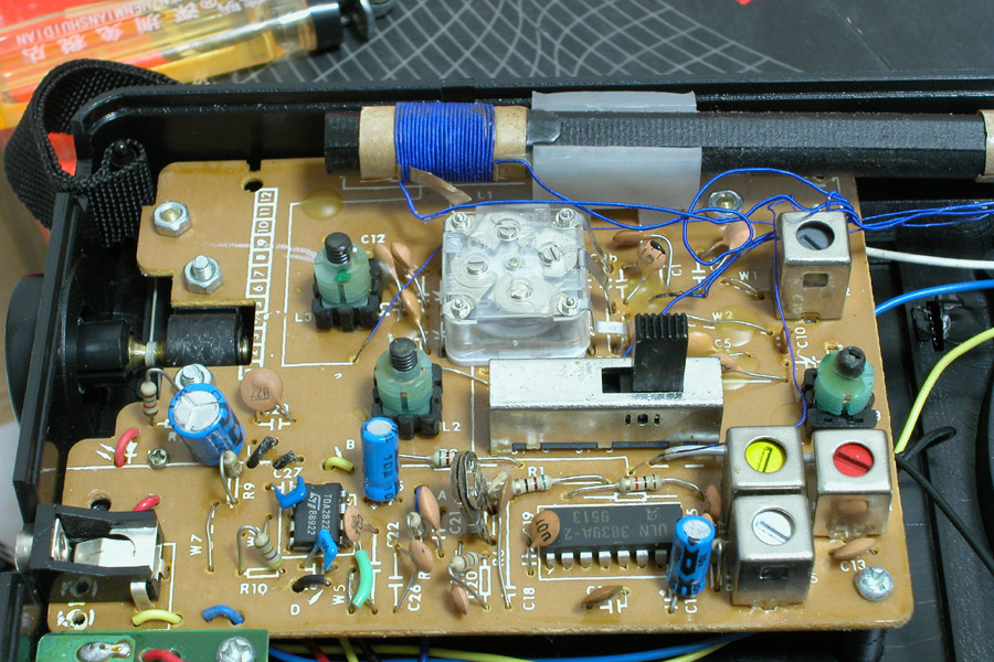 它的混频、中放采用的是堪称经典与ULN2204A构造相同的集成电路ULN3839A。各线圈有蜡封(出厂经过认真调试),功放为了提高输出功率,舍弃了前级ULN3839A内的集成功放,而单独采用了TDA2822双声道专用集成电路功放,接成BTL输出电路,使得音频输出功率可达1.35W。因而,灵敏度很高,声音特别洪亮。