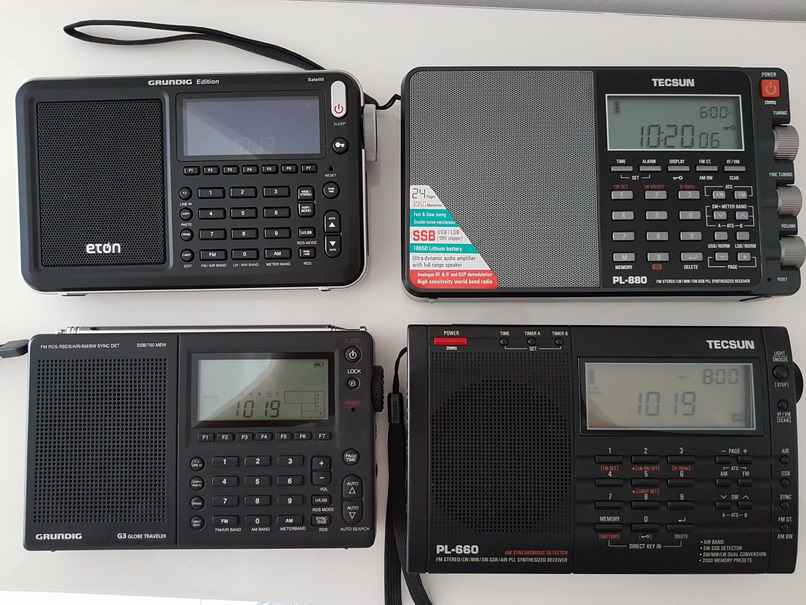除了正常的广播波段,SSB的接收也是一个重大考虑。接收SSB的话,首先灵敏度和短波是一样的,这里重点是语音可懂度。1106其实语音可懂度最好,调整好了之后听起来讲话声音最逼真。但是由于不是很稳定,经常要再做一些微调。伊顿这只的SSB微调通过按下飞梭进行切换,和880一样,可以10HZ调整,这是非常好的,电调绝对稳定,频率一点都不飘。另外声音也不错,感觉比880好一点点。最后是660,不知怎么回事,接收灵敏度没问题,但怎么讲话声音听起来就像怎么也调整不好呢?估计是音频均衡器问题,广播节目讨好人的耳朵,SSB就帮倒忙,听不清了。