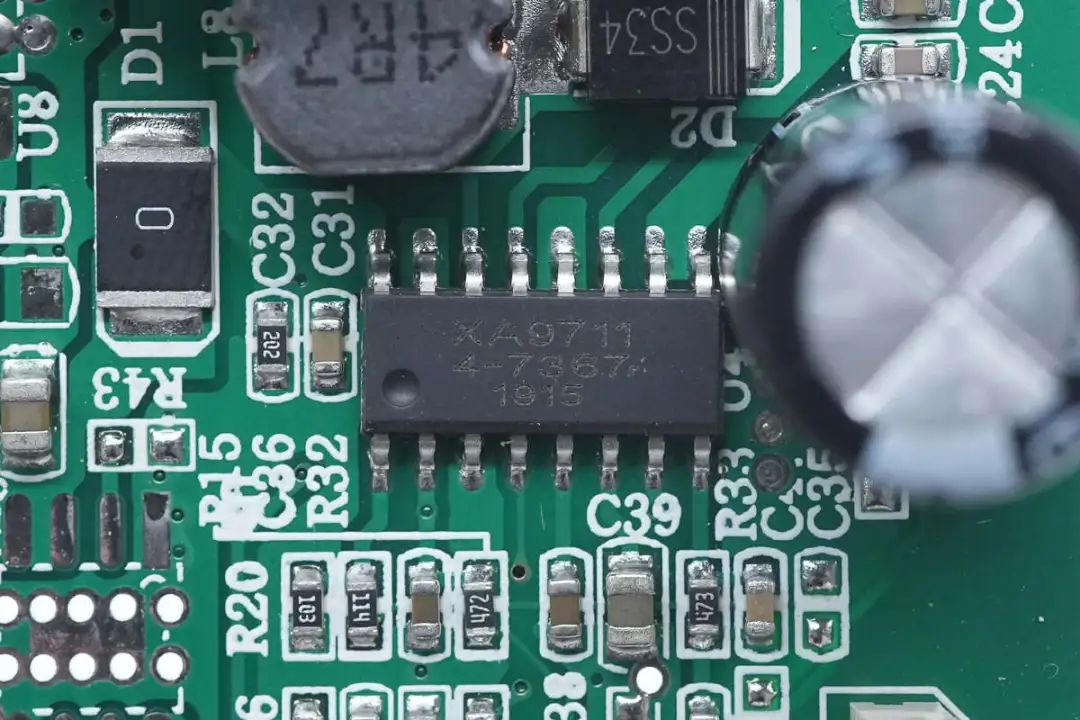 音频功放芯片丝印XA9711,内置升压功能,将输入升压为功放供电,提升输出功率。