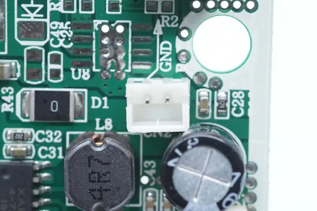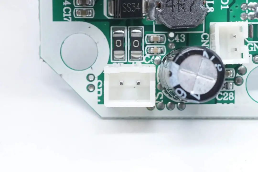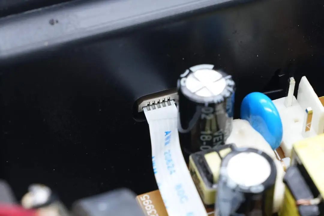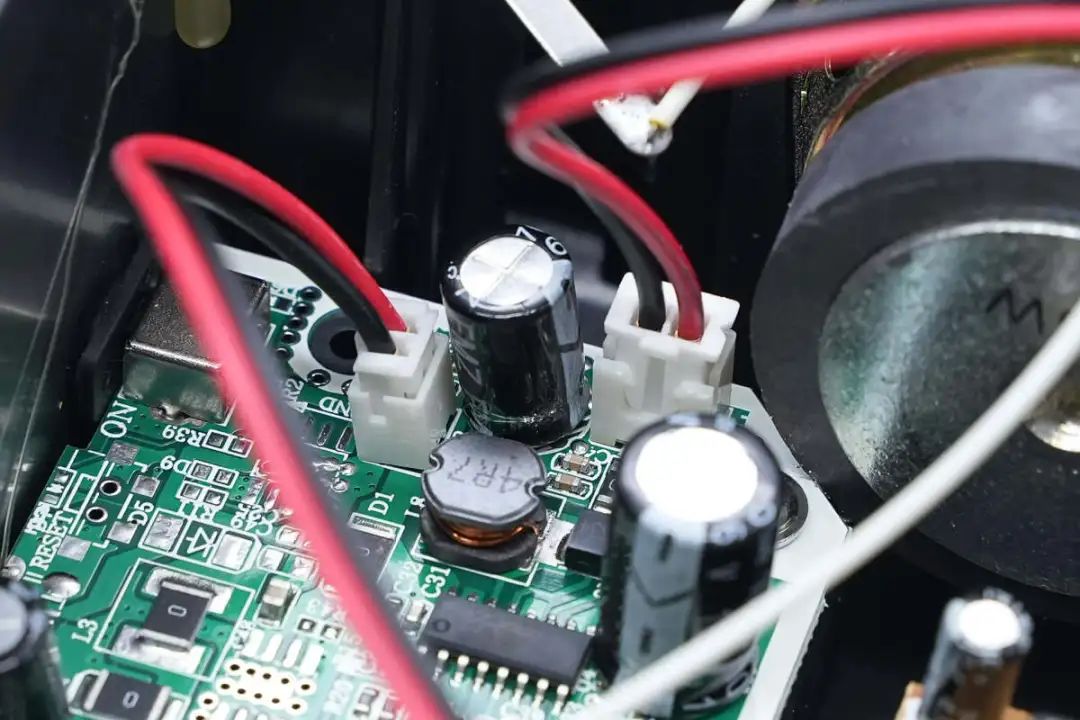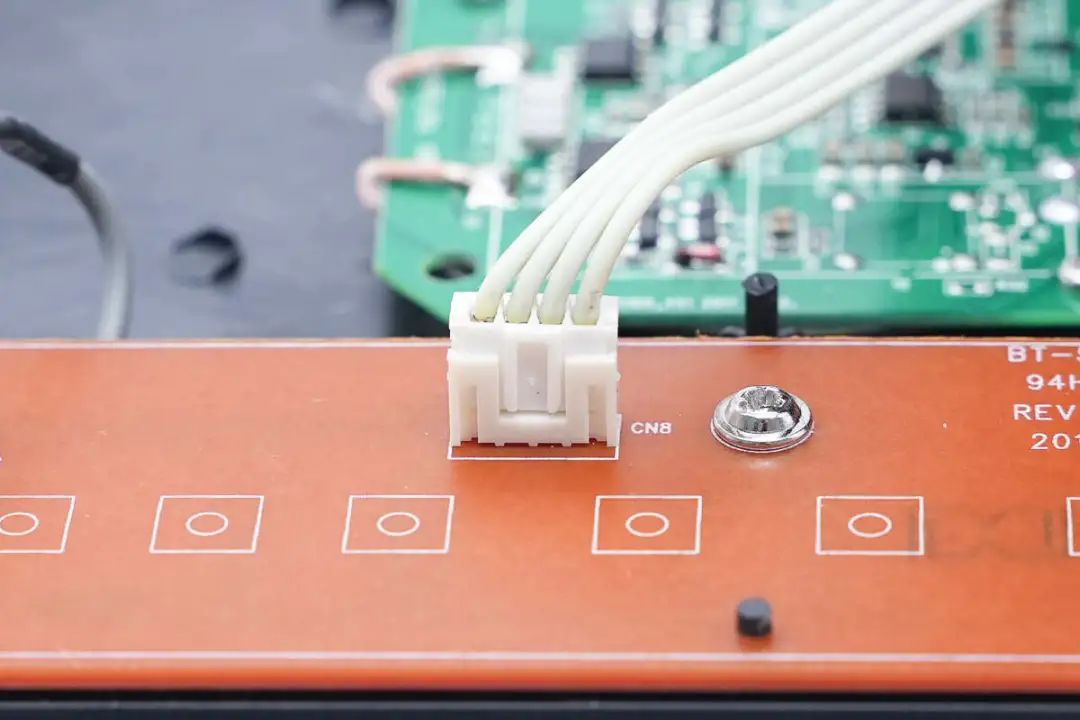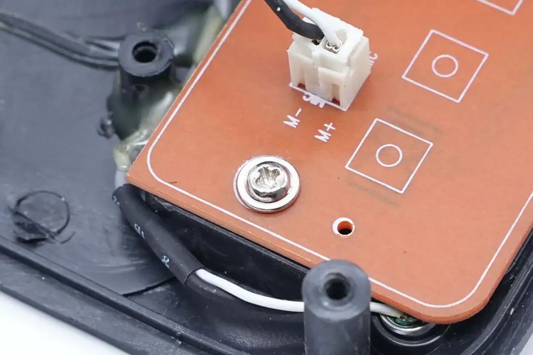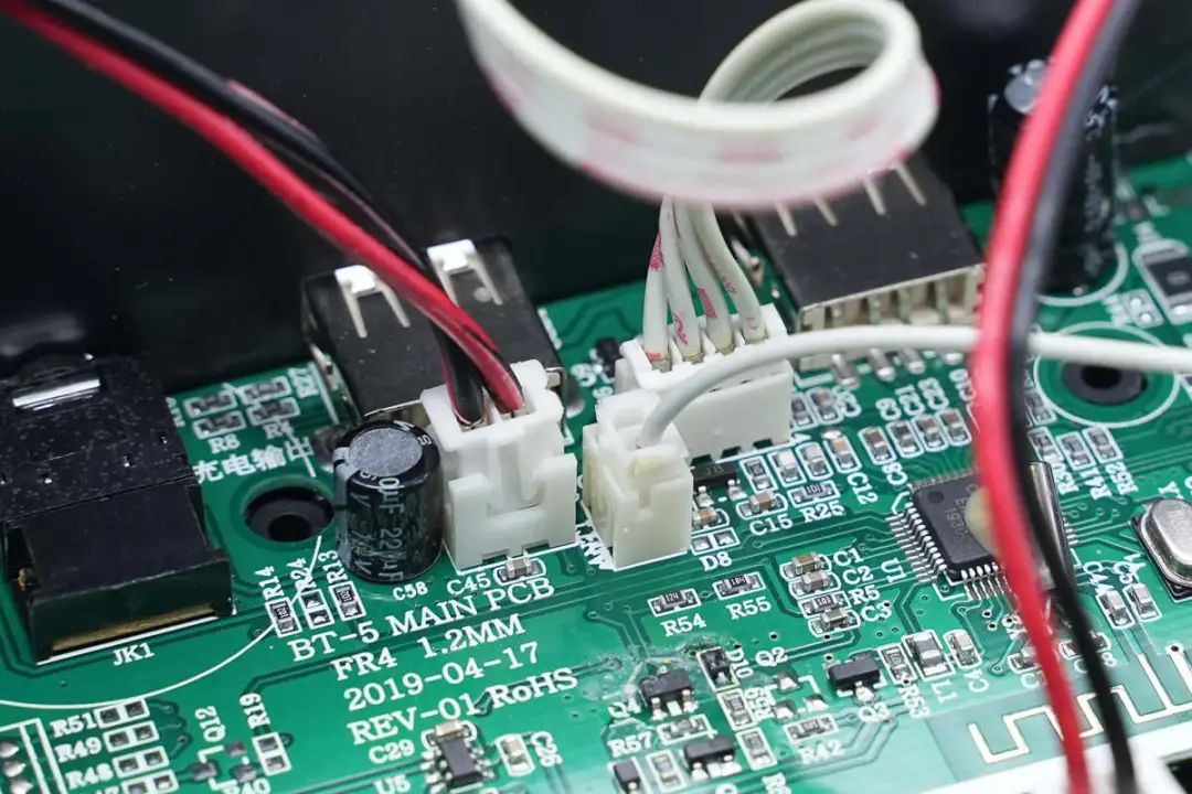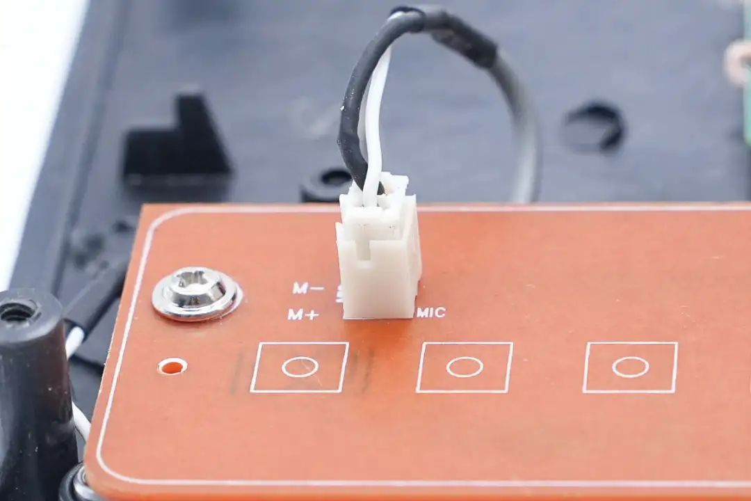 左侧插接件连接电源小板,右侧插接件连接到扬声器。