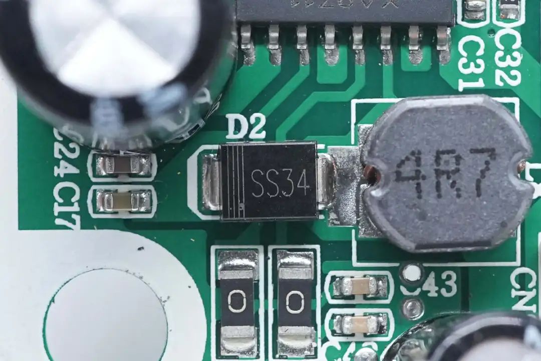 两颗肖特基二极管并联,型号SR360,规格为3A 60V,用于输出整流。