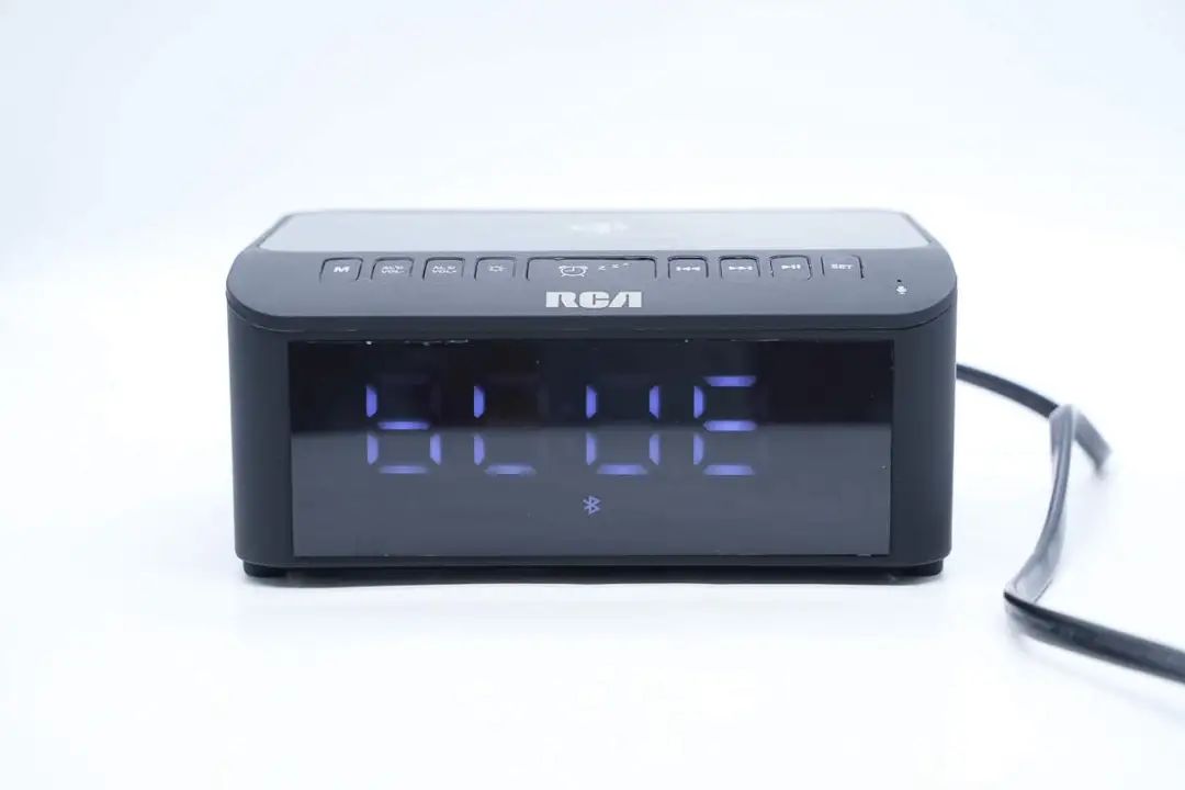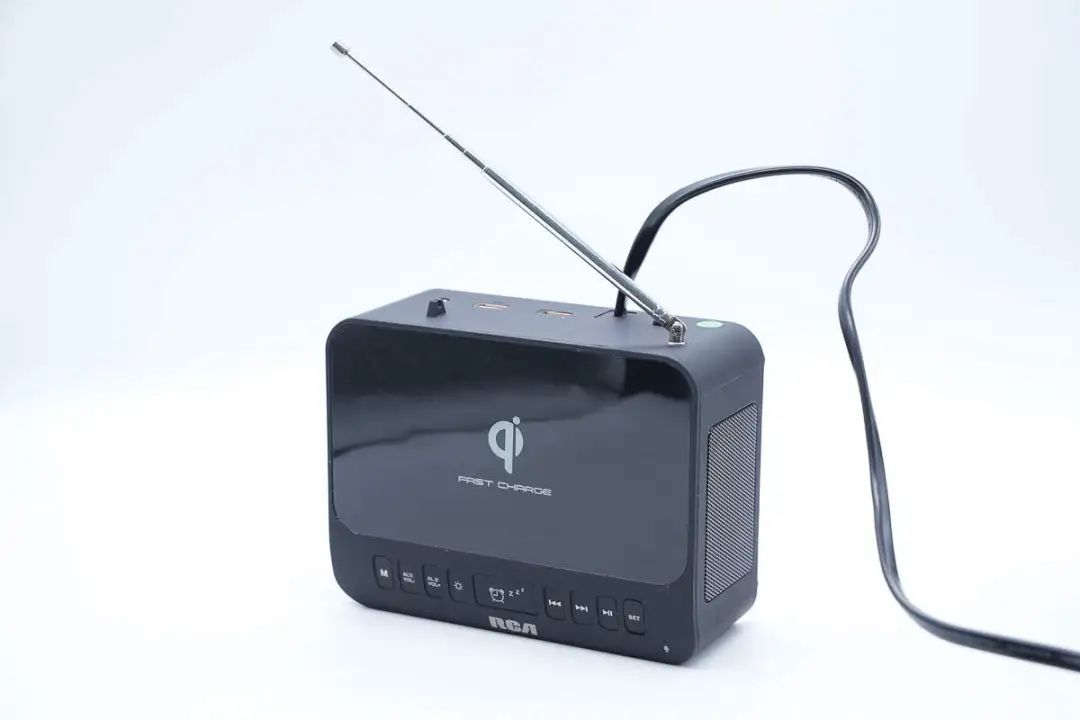 RCA多功能钟控收音机在传统功能单一的钟控收音机基础上,增添了蓝牙连接和无线充电功能,搭配手机使用更加便捷,将手机放在收音机上即可进行无线充电。同时这款收音机还具备USB接口,支持连接U盘播放内部音乐,支持有线为手机充电,功能齐全。