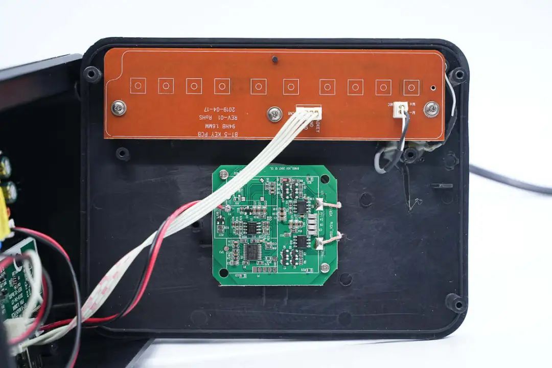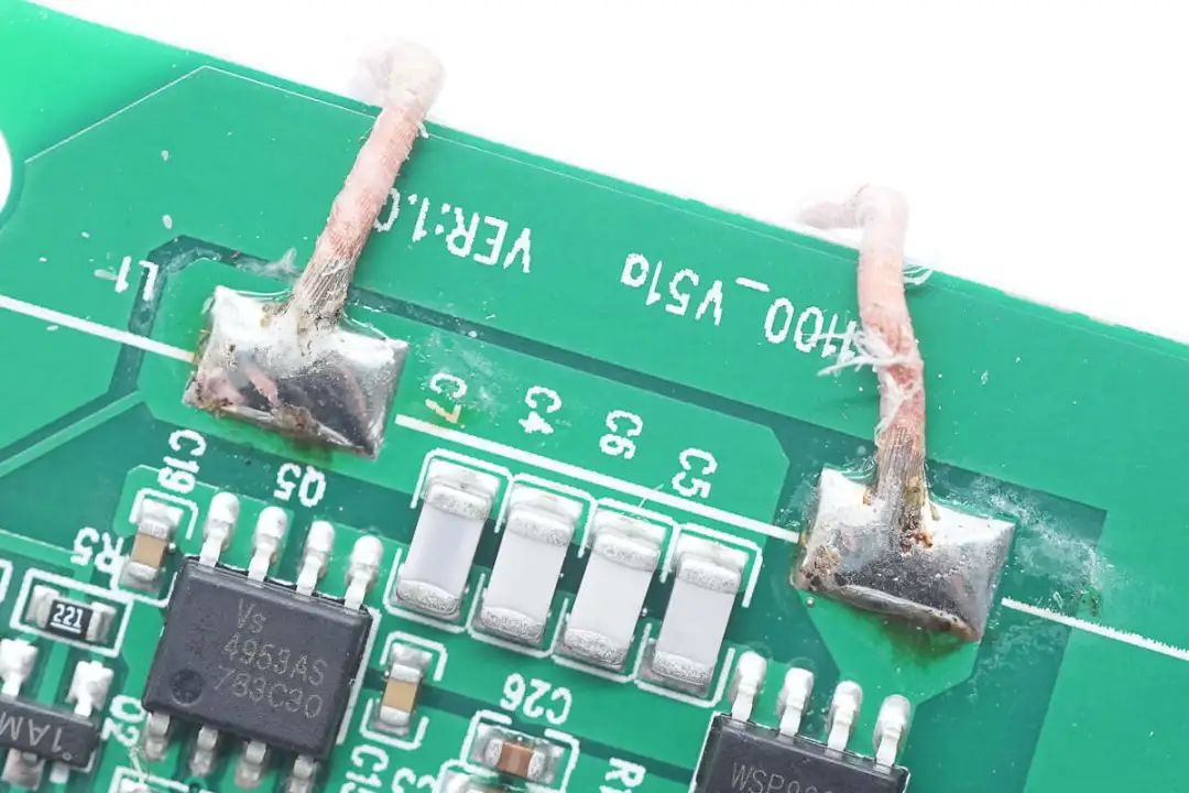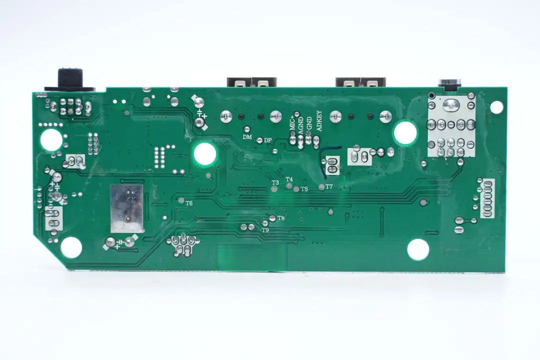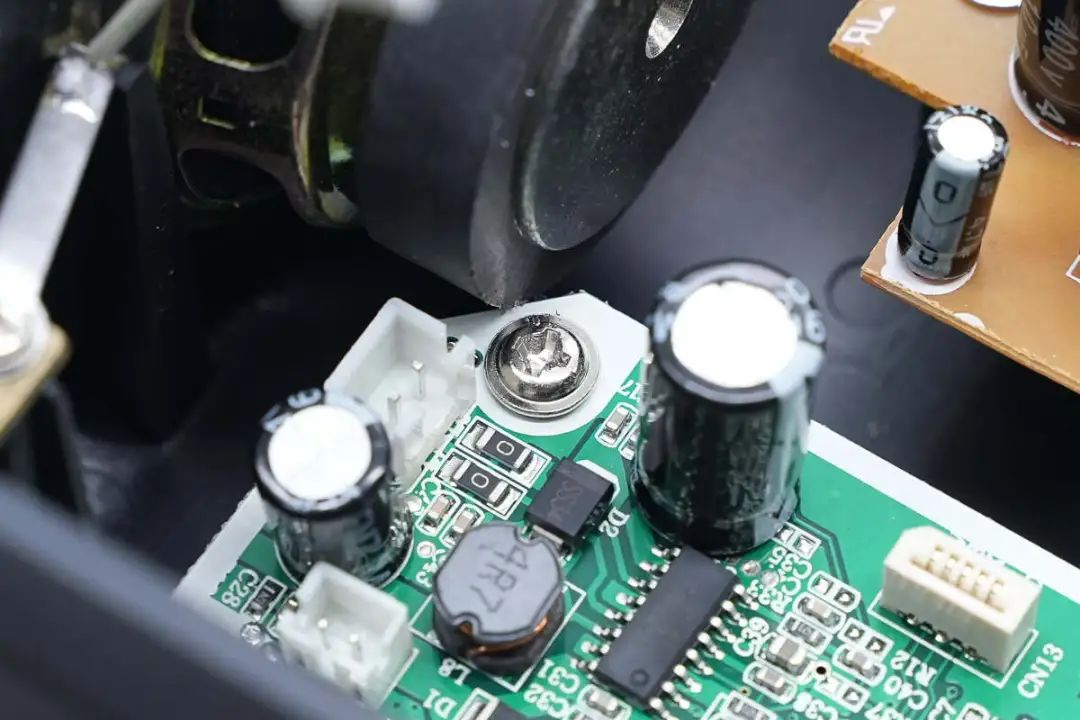 音箱主板背面没有焊接元件,对应功放芯片背面大面积露铜加锡散热。