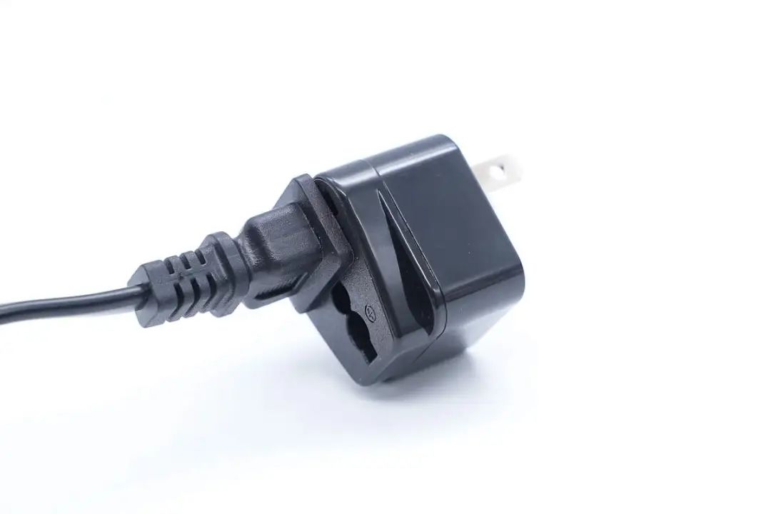 转换头将大小片两插转接成美标两插插头,适配国内插座使用。
