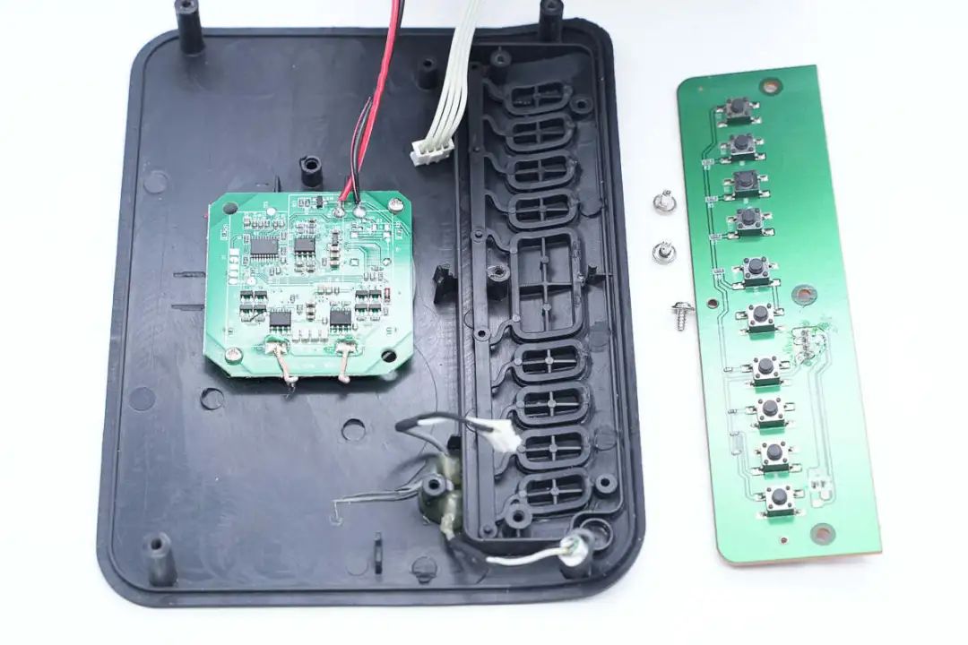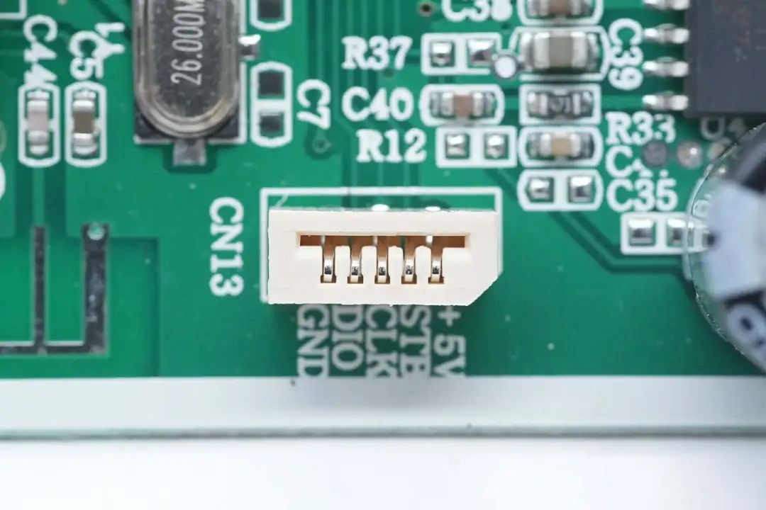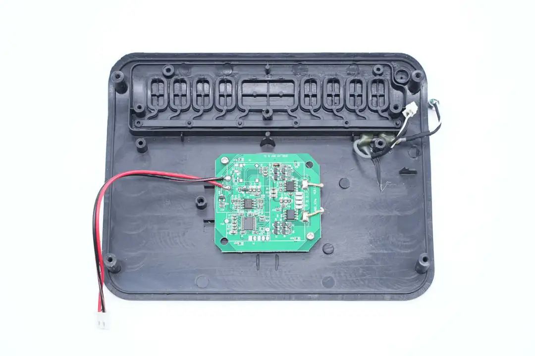 左侧插接件用于为无线充电模块供电,中间插接件连接到FM拉杆天线,右侧插接件连接到按钮小板。
