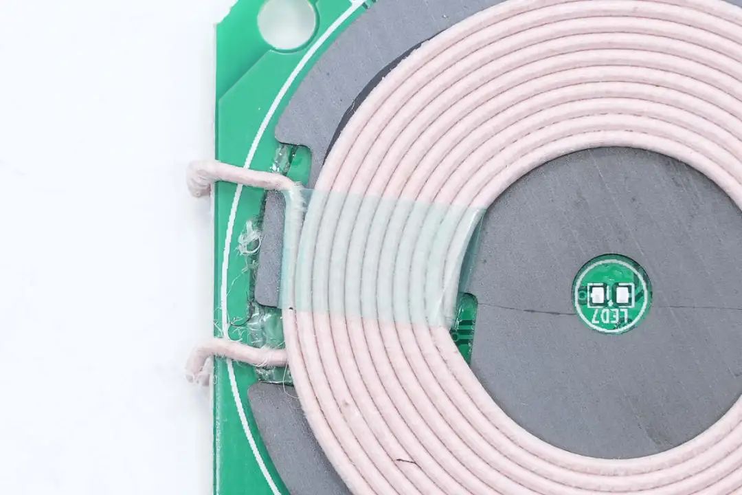 无线充电线圈通过焊接连接,焊点圆润饱满。