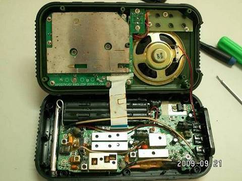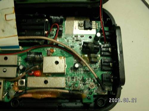 关于做这次007浸水试验,我相信有许多爱好者有同样的愿望,我是相信厂方的说法,也相信试验后机器肯定不会有大碍,结果也差不多,因此敢这样做,欢迎指正,就机论机.在昨天浸了二次水,第一次最深有最30公分,第二次是漂在水上,但时间有二分多钟,拿上来后甩出过一些水,放了后24小时后打开,有些有金属屏蔽罩的地方有锈,线路板经过防水处理,上面象有蜡,也可能是防水胶,但许多装配细节上不到位,在图上可以看出,最后三张是装好后上电拍的,各波段收听正常(耳朵感觉).