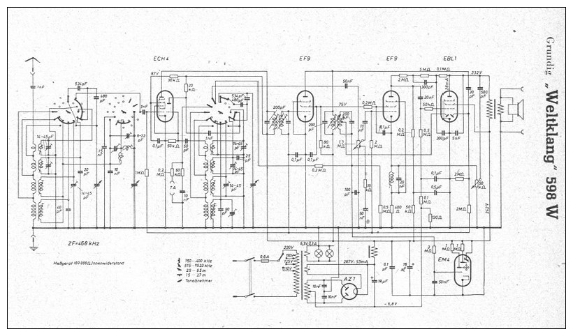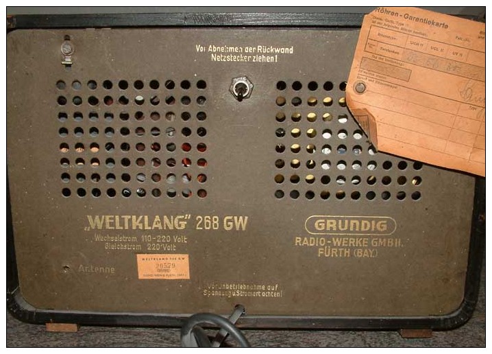 生产线和研发实验室一应俱全的大企业了。于是再接再厉,适时推出了根德的第一款成品收音机:Weltklang(见附图一至八)。因此机面市后
