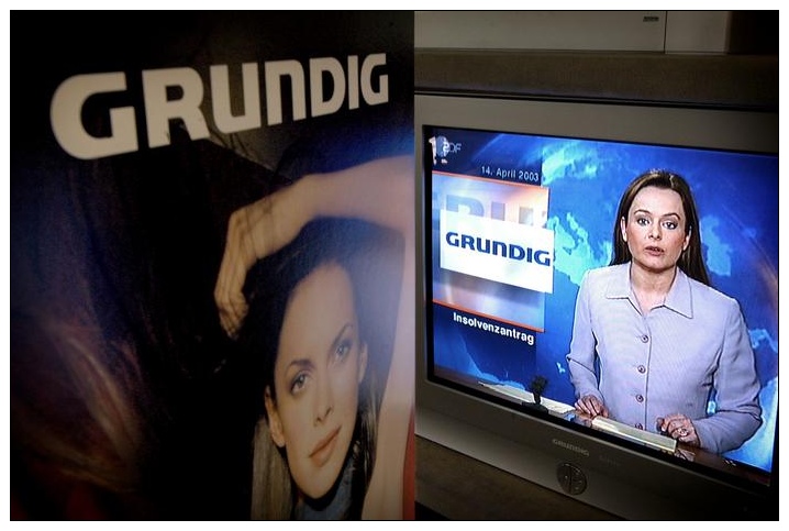 二零零三年四月十四日,是根德历史上最暗淡无光的一天:根德宣布破产。附图一就是当年根德生产的电视机中,正在播放自己破产新闻