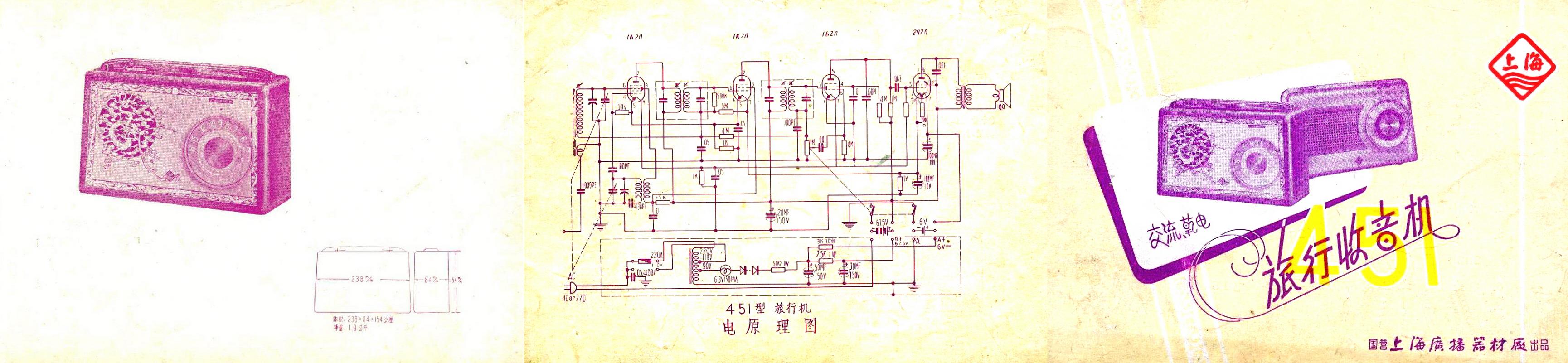 上海451型交流、电池两用手提式旅行收音机是我最喜欢的国产电子管收音机机型。我喜欢听电子管收音机的声音,那是与听晶体管收音机、集成电路收音机完全不同的感觉。然而囿于条件所限,实在没有空地摆放体积庞大的各式交流电子管收音机。于是,体积小巧的直流电子管机就成了最佳选择。