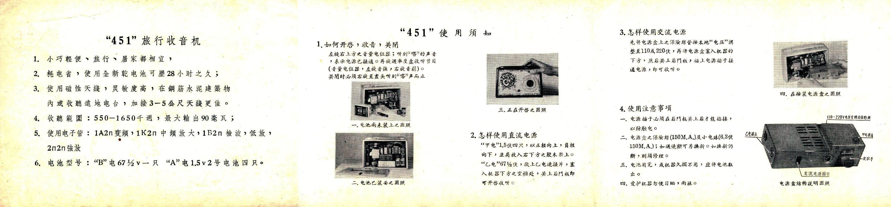 上海451说明书,感谢highstore网友提供,我的那份太破。塑壳的图片是早期的,可惜没对塑壳机做详细介绍。木壳雕花很漂亮,四周还有花纹。