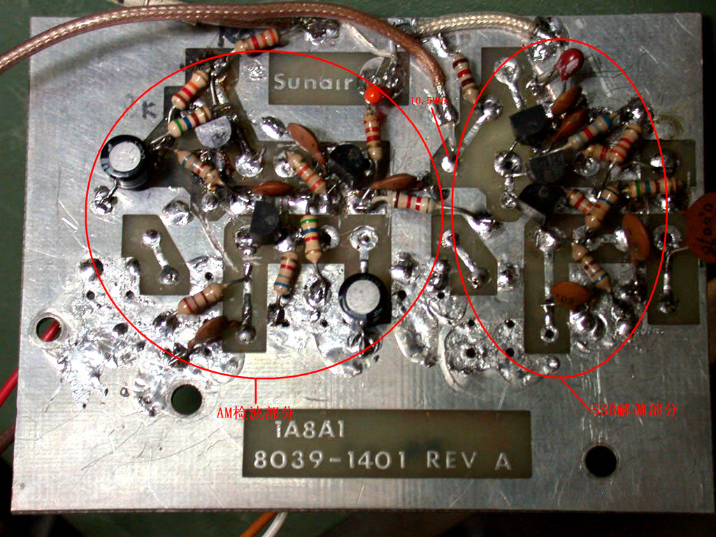 解调板的基板用拆除原机内的LSB和USB AUDIO输入板(1A8A1)来改造,此板原来的作用可能是几种音频输入的选择,这点可从面板上的MIC SELECT开关可以看出。利用其电路板来改造成解调板正合适。