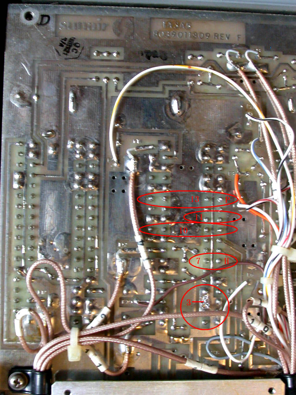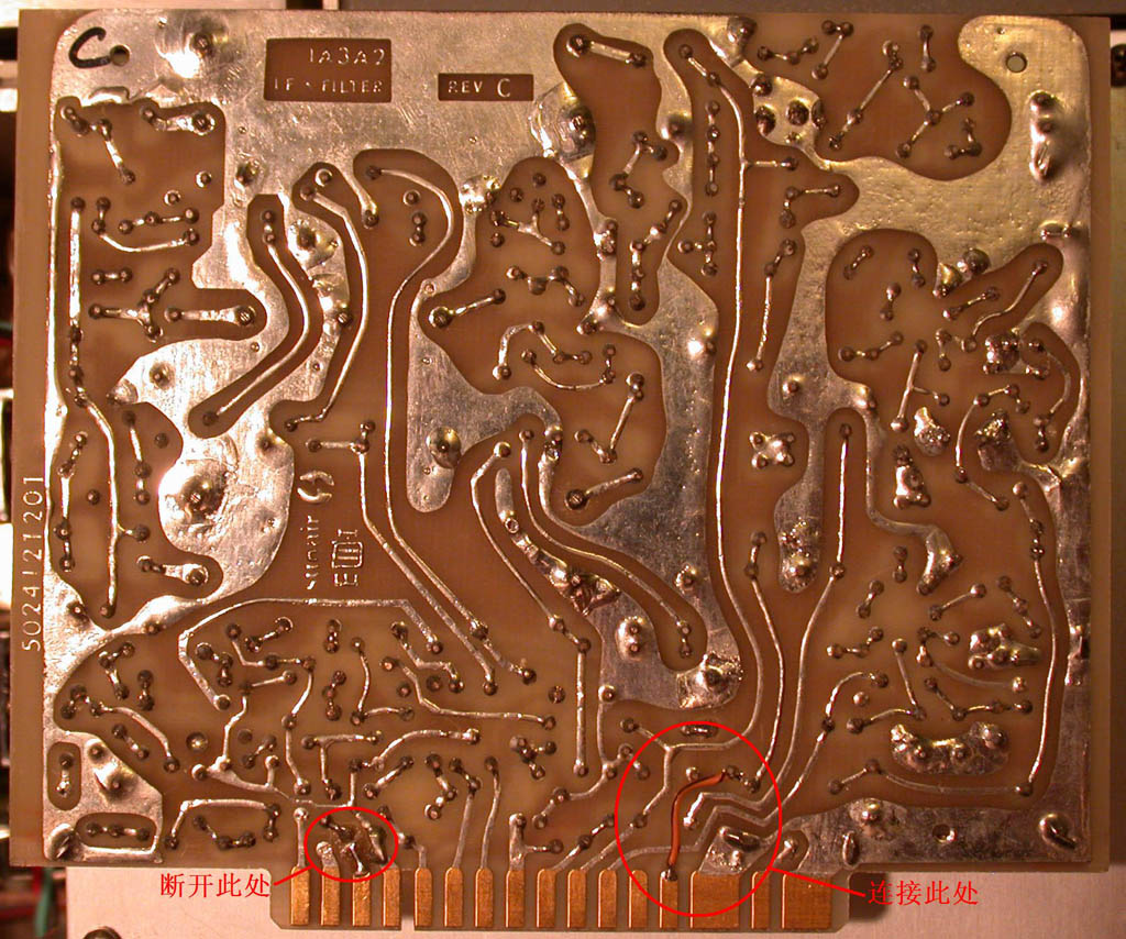 3. 激励主板(1A3A5)上的中频滤波板(1A3A2)插座的第3脚12 R被强制接地。而且在电路板双面都被大面积接地。这还为后续的接收改造带来一定的困难,最后只好从1A3A2板上入手借用另外的板脚13,此是后话。
