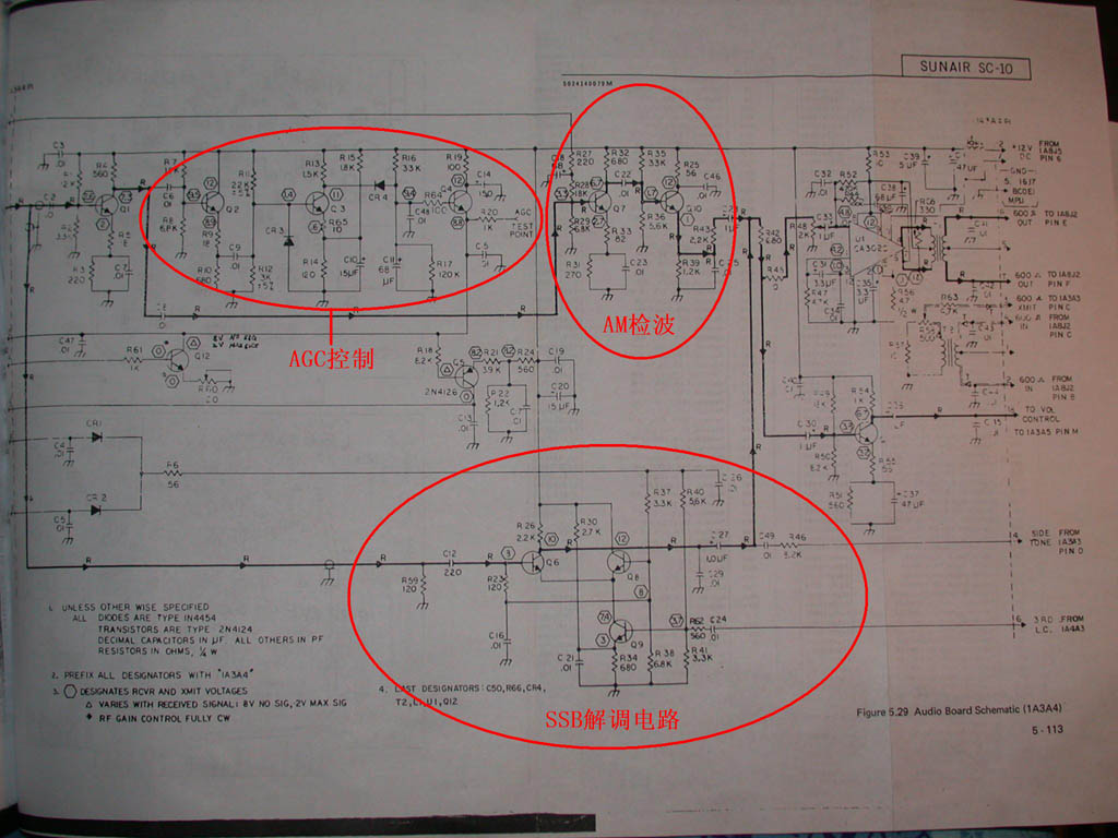 10. 参照SC-10的AUDIO板1A3A4的AM检波和SSB解调电路用分立元件制作解调板。