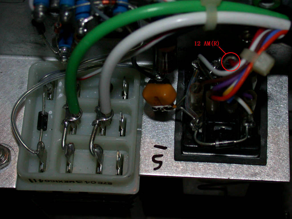 从收发转换继电器上找到12 AM(R)线,引至主板第7脚。