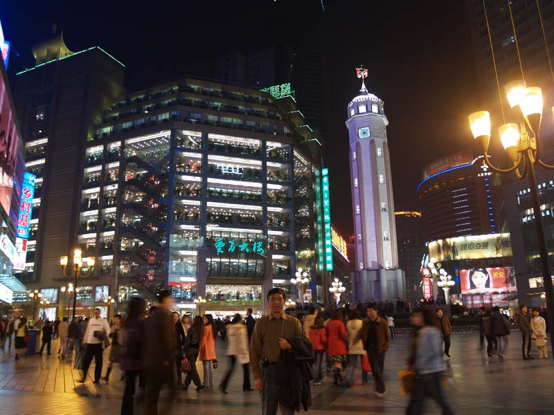 以下是晚上逛步行街,解放碑